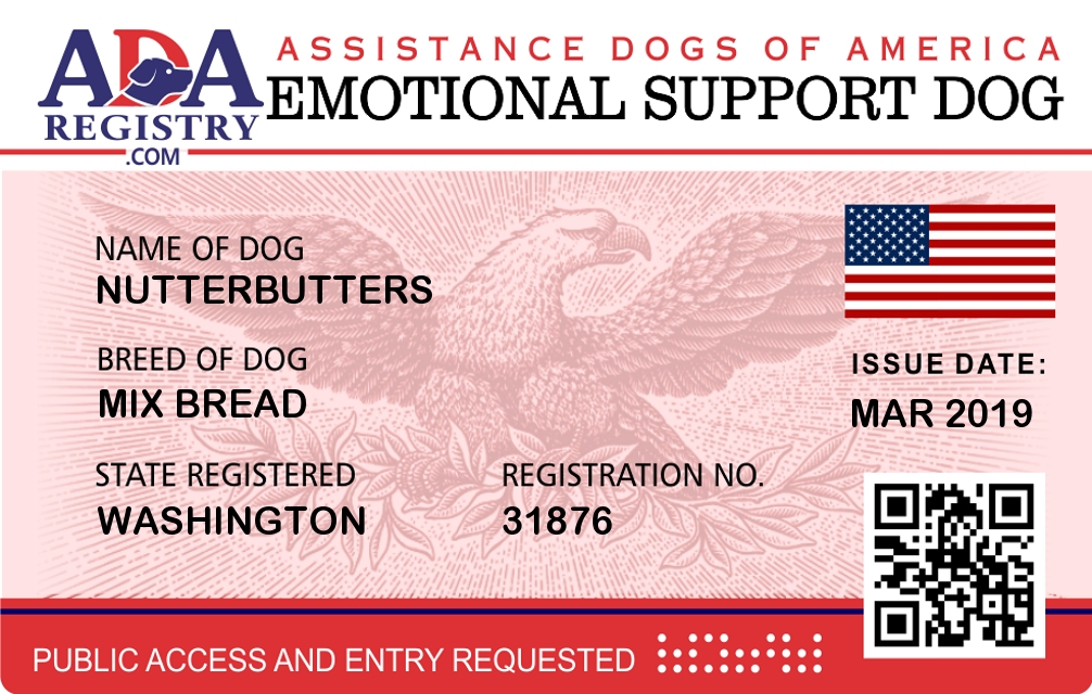 Emotional Support Dog Registration for Nutterbutters