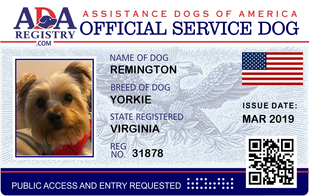 Service Dog Registration for Remington