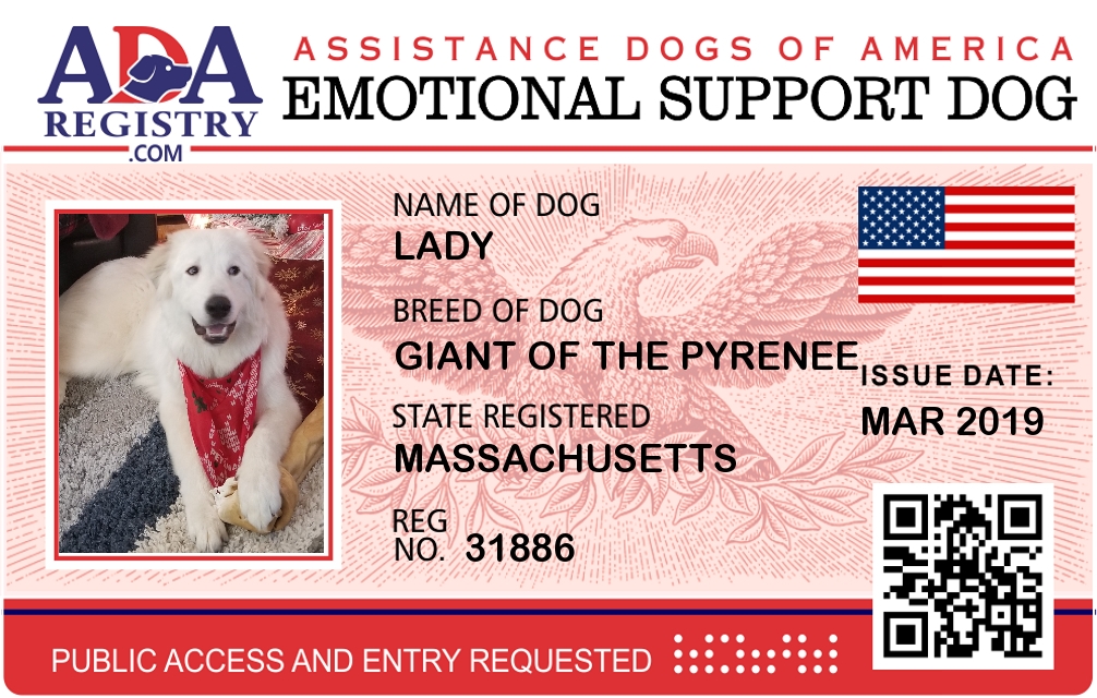 Emotional Support Dog Registration for Lady