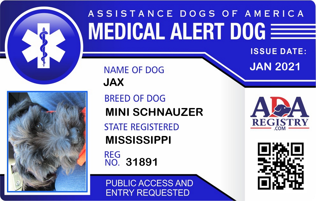 Medical Alert Dog Registration for Jax