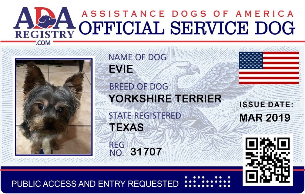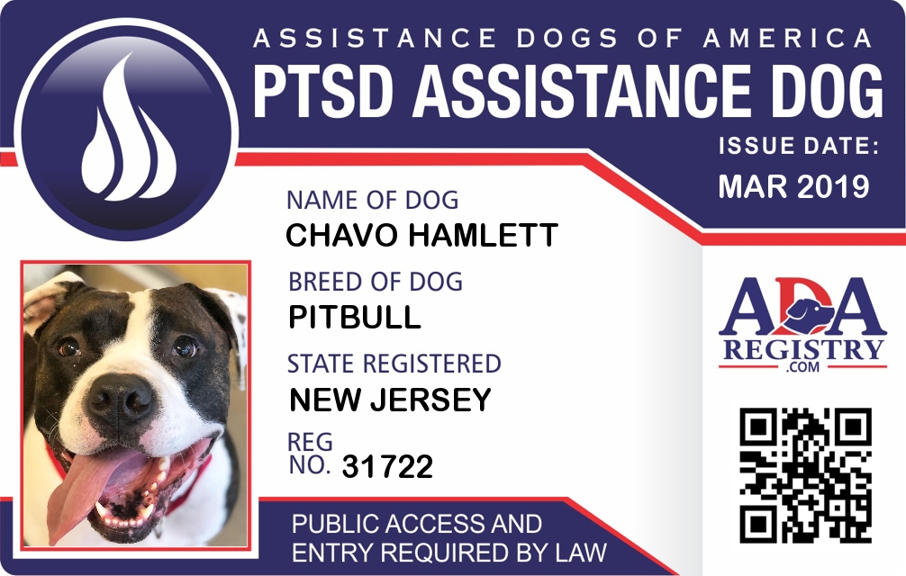 PTSD Assistance Dog Registration for Chavo Hamlett