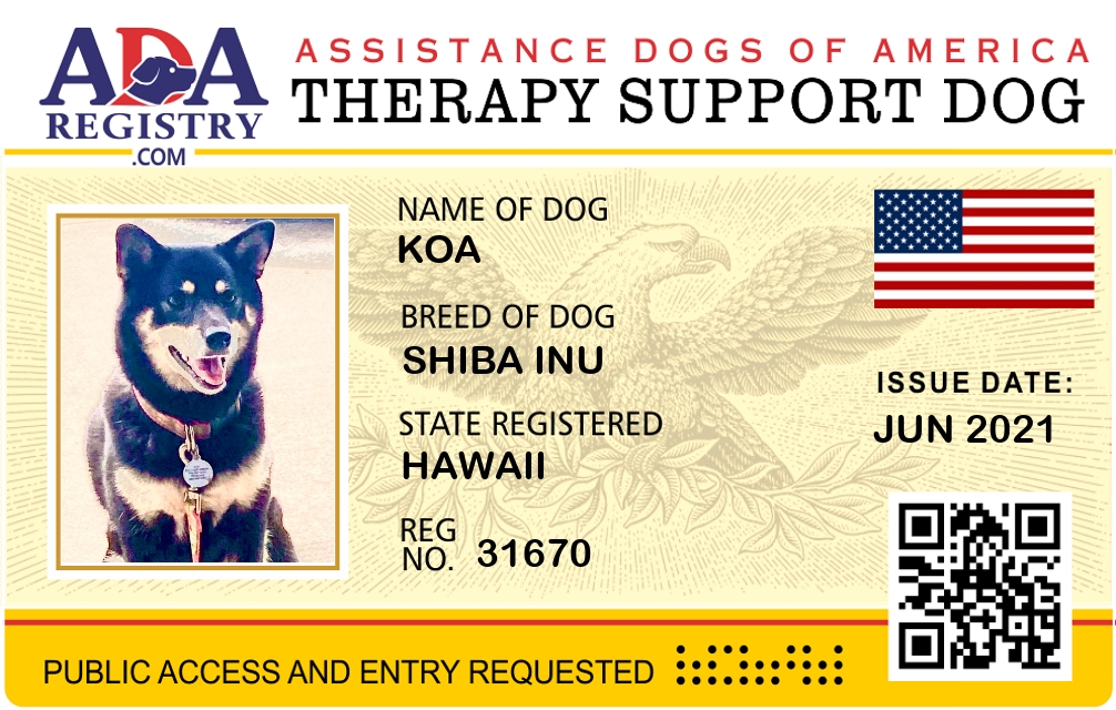 Therapy Dog Registration for Koa