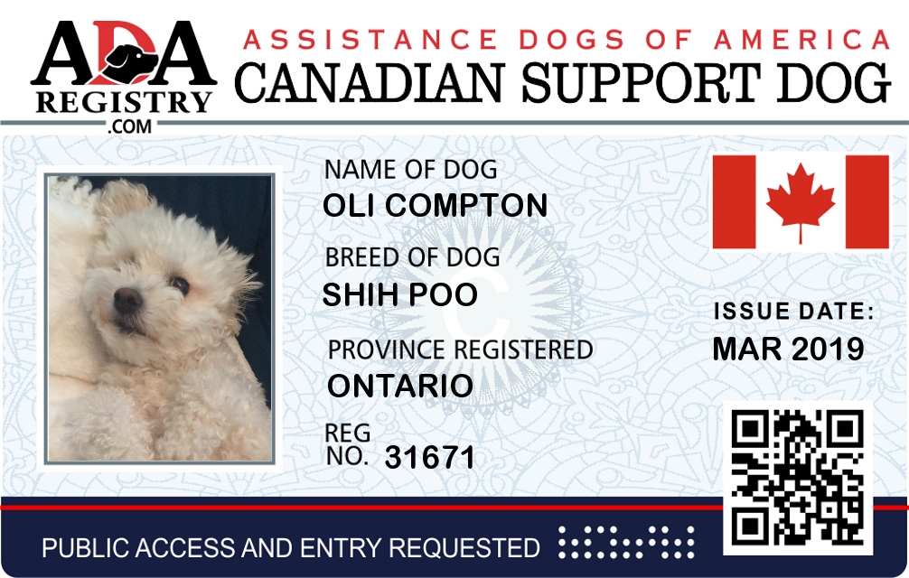 Emotional Support Dog Registration for Oli Compton