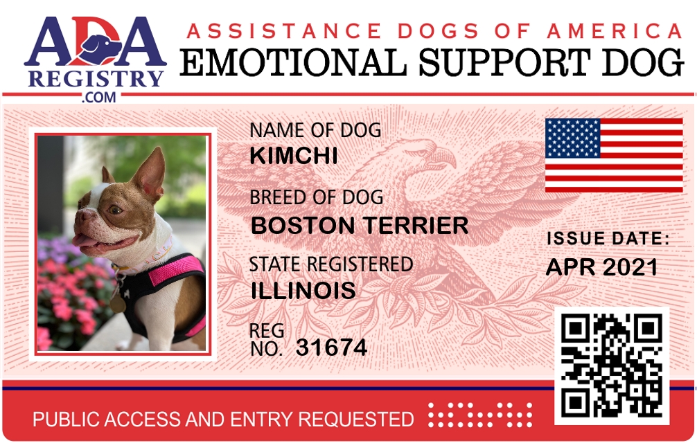 Emotional Support Dog Registration for Kimchi