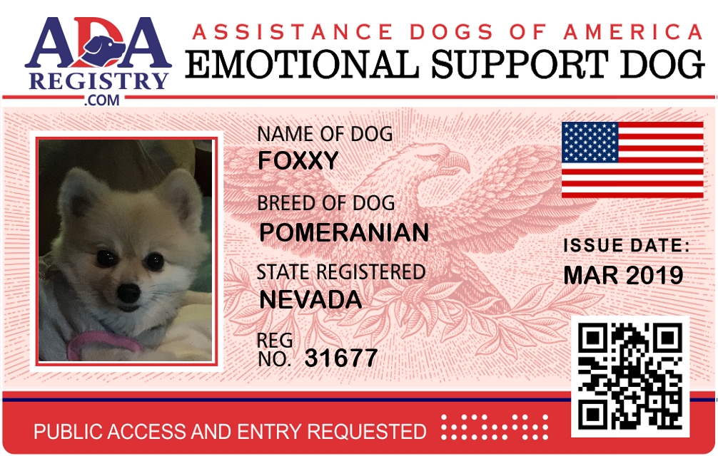 Emotional Support Dog Registration for Foxxy