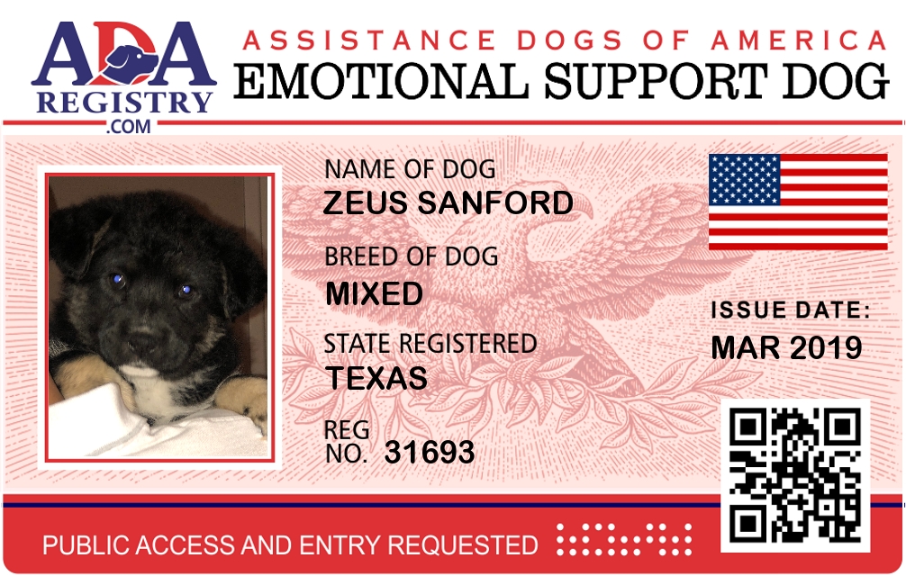 Emotional Support Dog Registration for Zeus Sanford