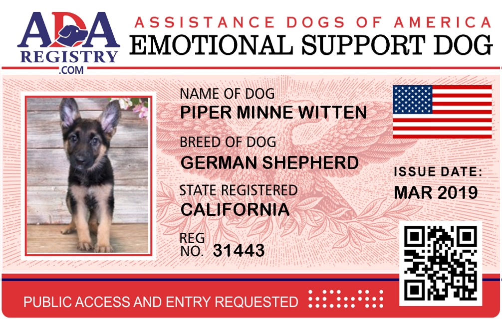 Emotional Support Dog Registration for Piper Minne Witten