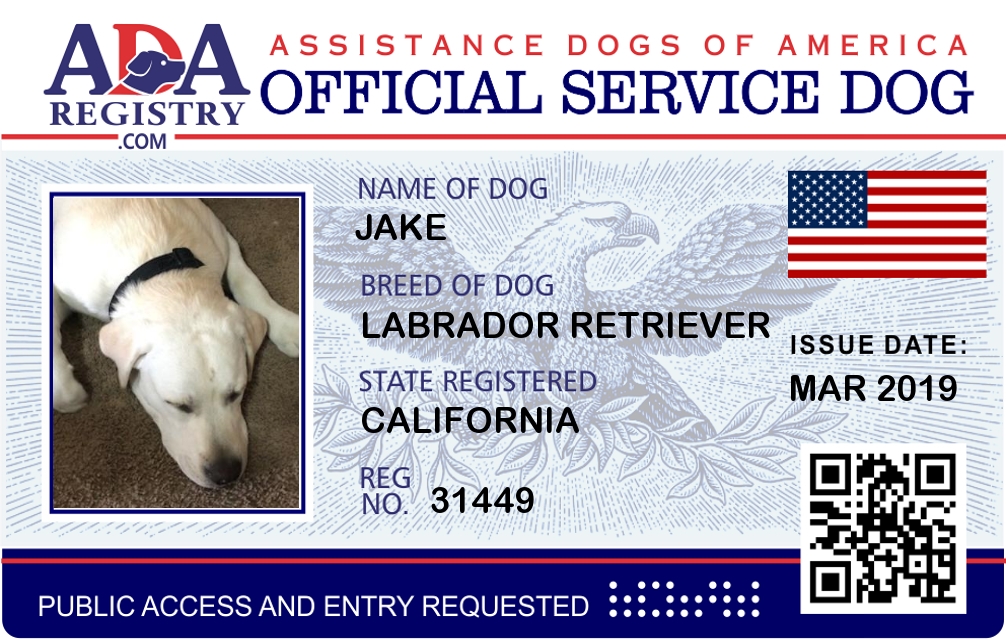 Service Dog Registration for Jake