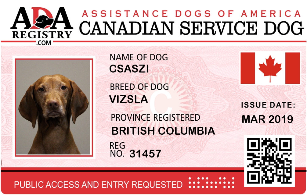 Service Dog Registration for Csaszi