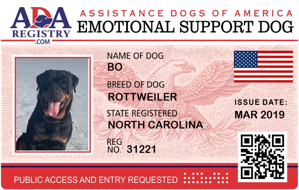 Emotional Support Dog Registration for Bo