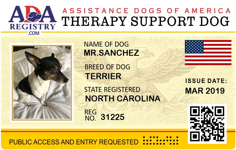 Emotional Support Dog Registration for Mr.Sanchez