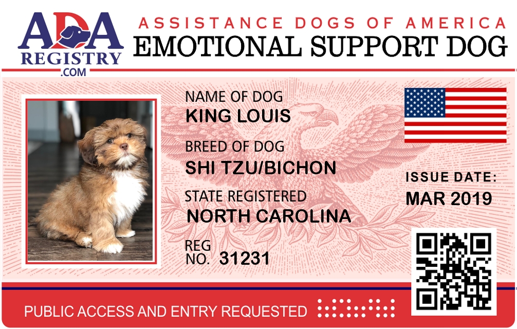 Emotional Support Dog Registration for King Louis
