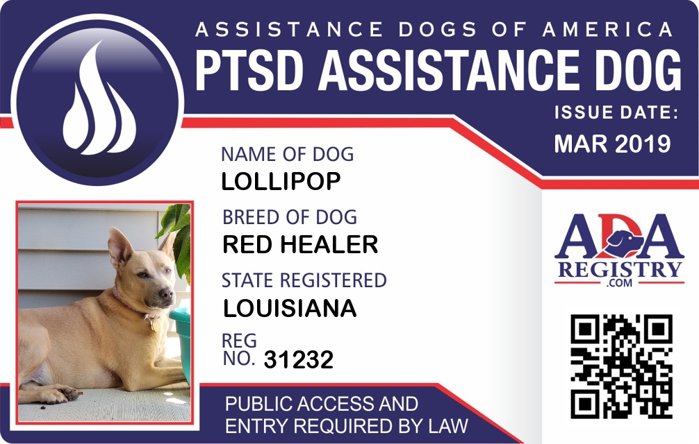 PTSD Assistance Dog Registration for Lollipop