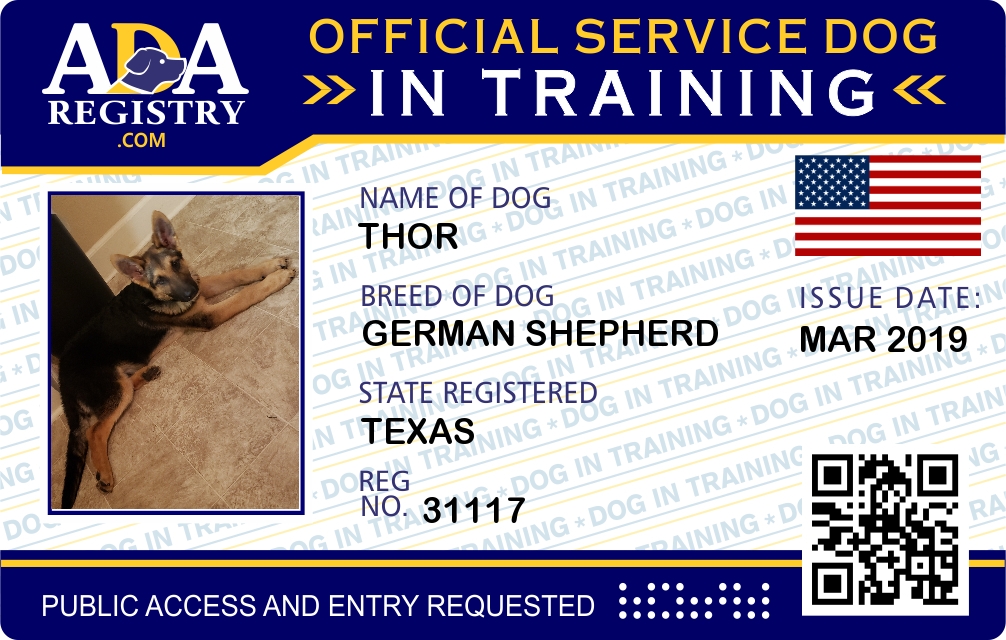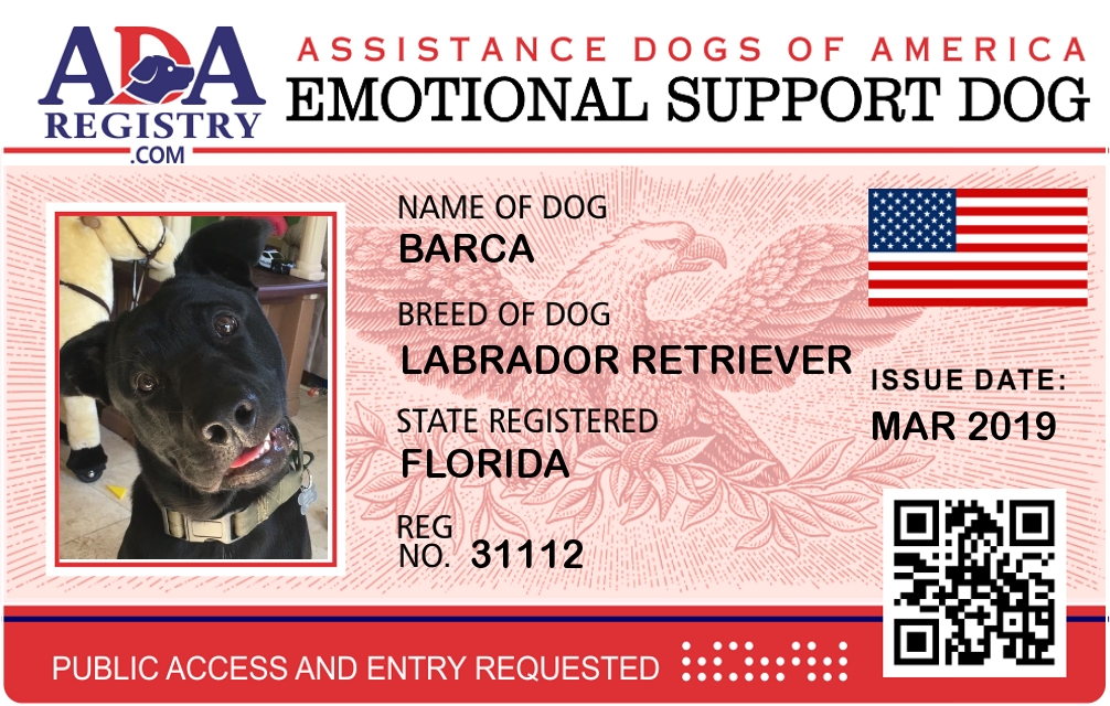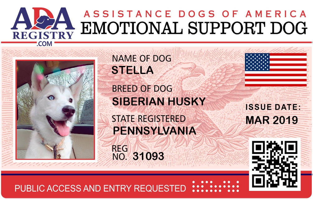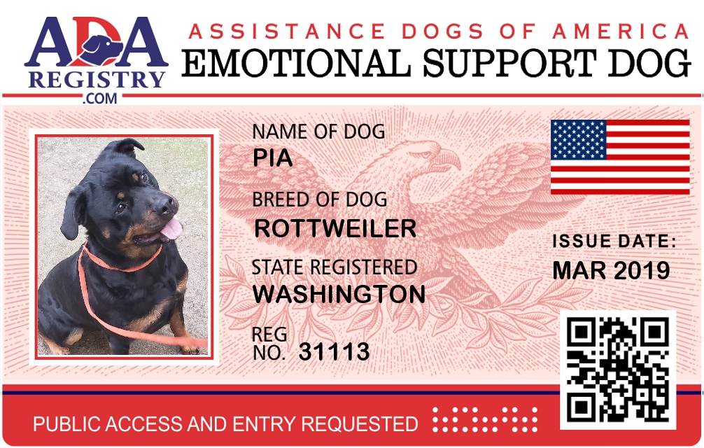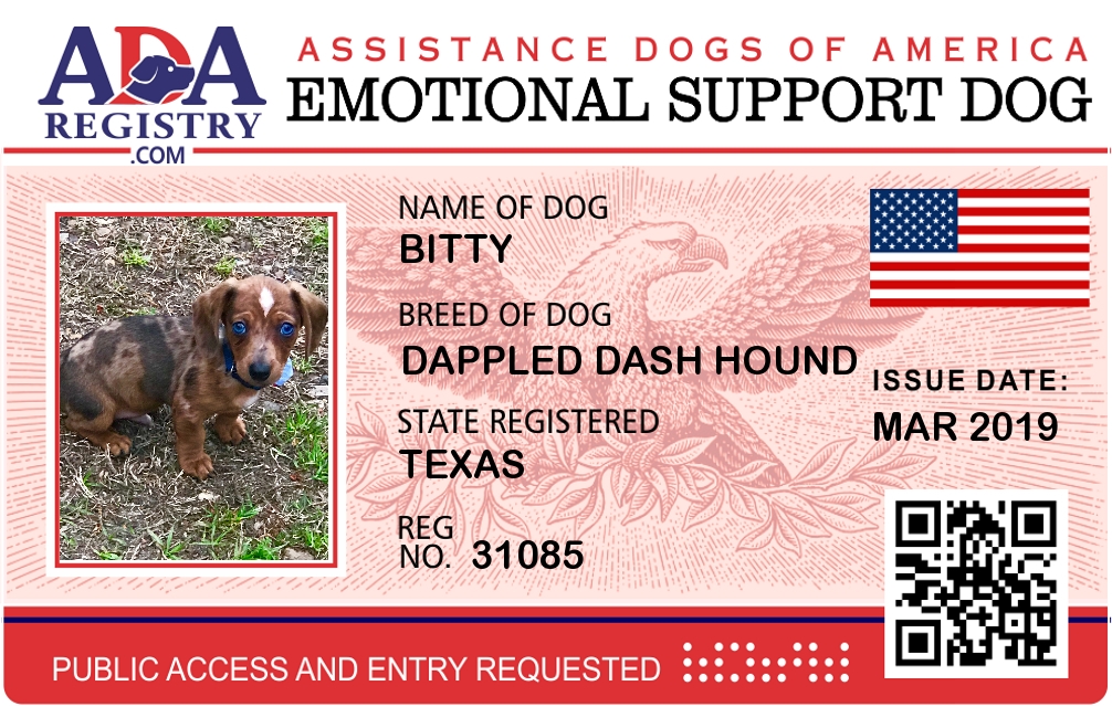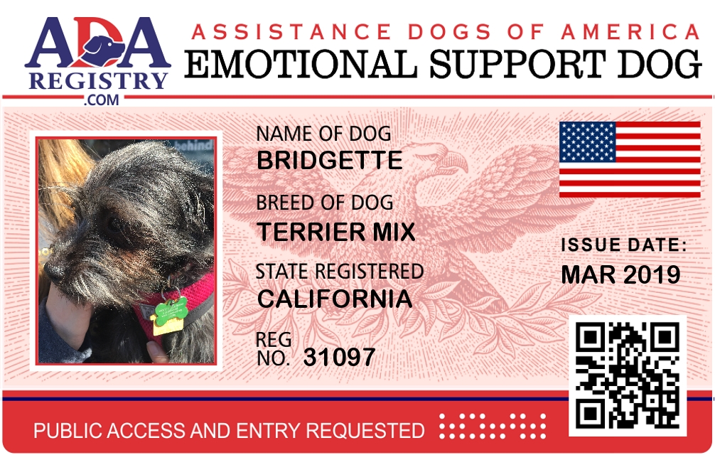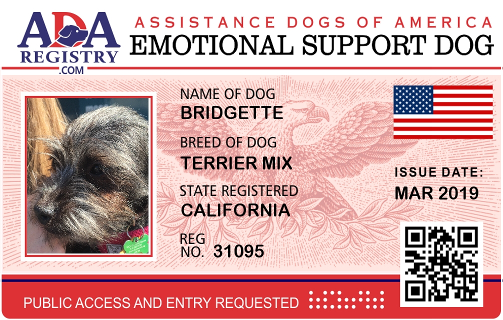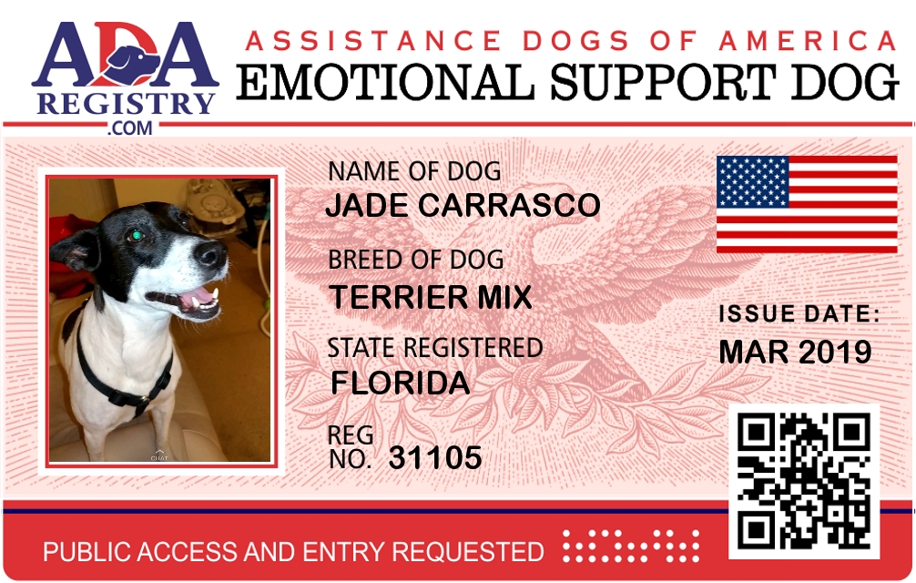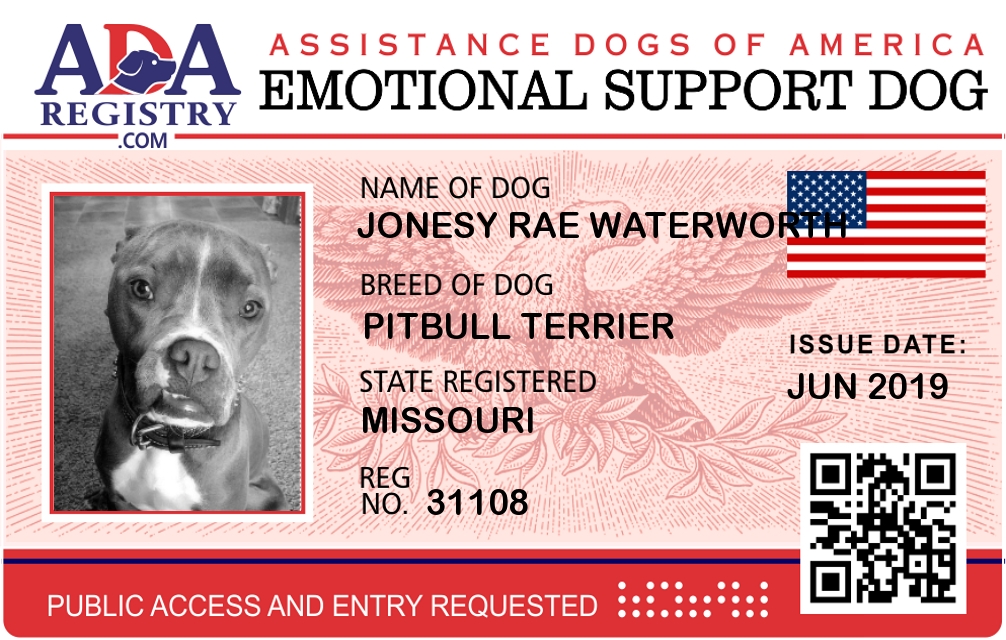 Emotional Support Dog Registration for Jonesy Rae Waterworth