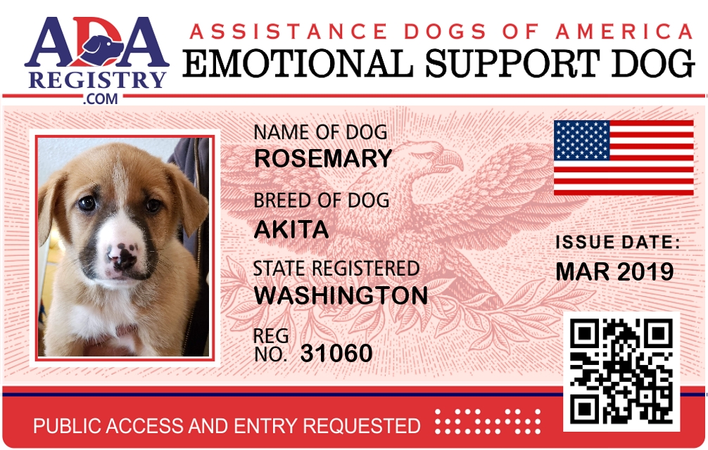 Emotional Support Dog Registration for Rosemary
