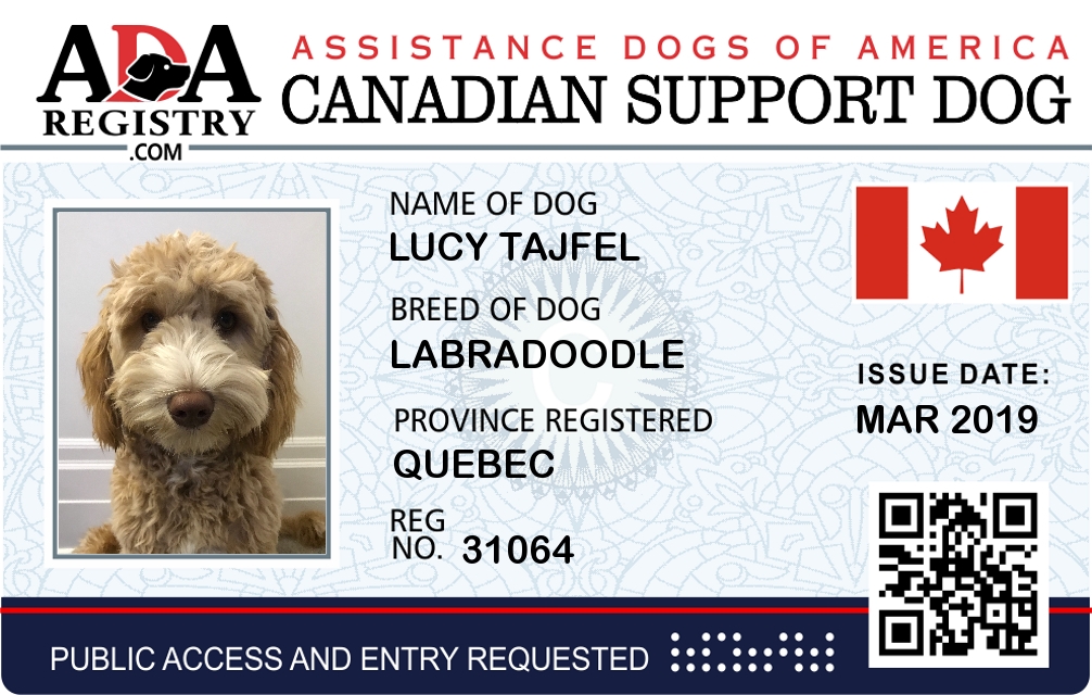 Emotional Support Dog Registration for Lucy Tajfel