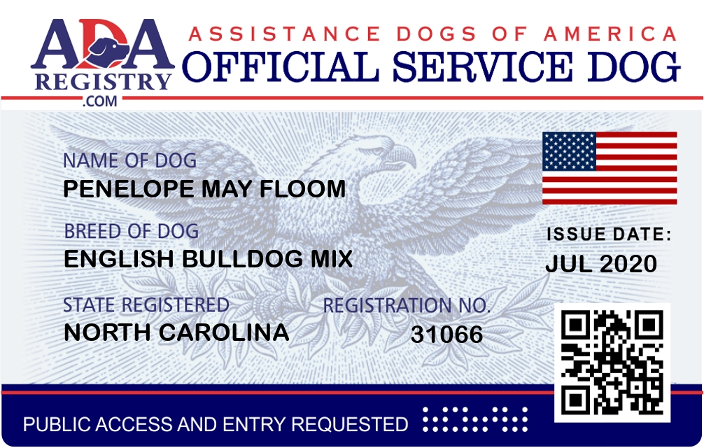 Service Dog Registration for Penelope May Floom