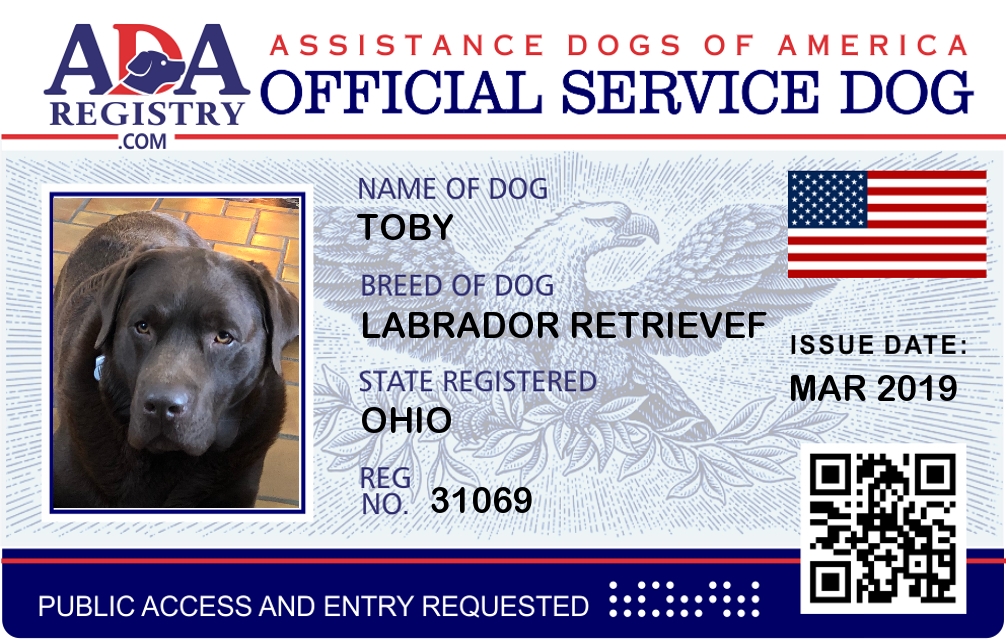 Service Dog Registration for Toby