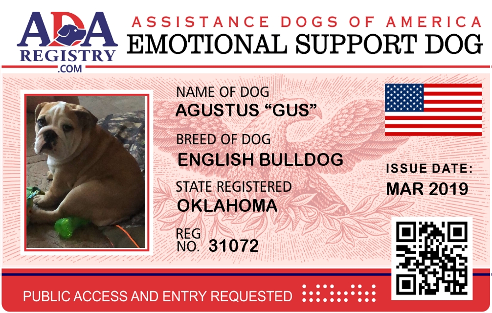 Emotional Support Dog Registration for Agustus “Gus”