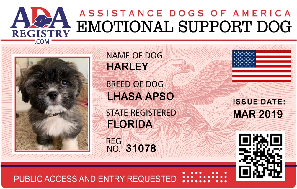 Emotional Support Dog Registration for Harley