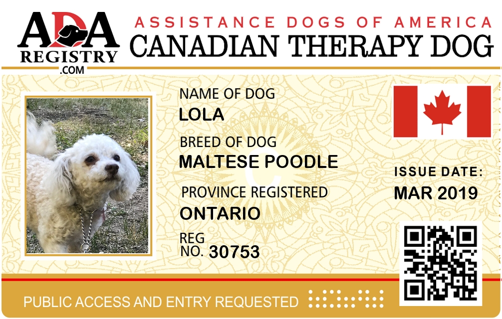 Therapy Dog Registration for Lola
