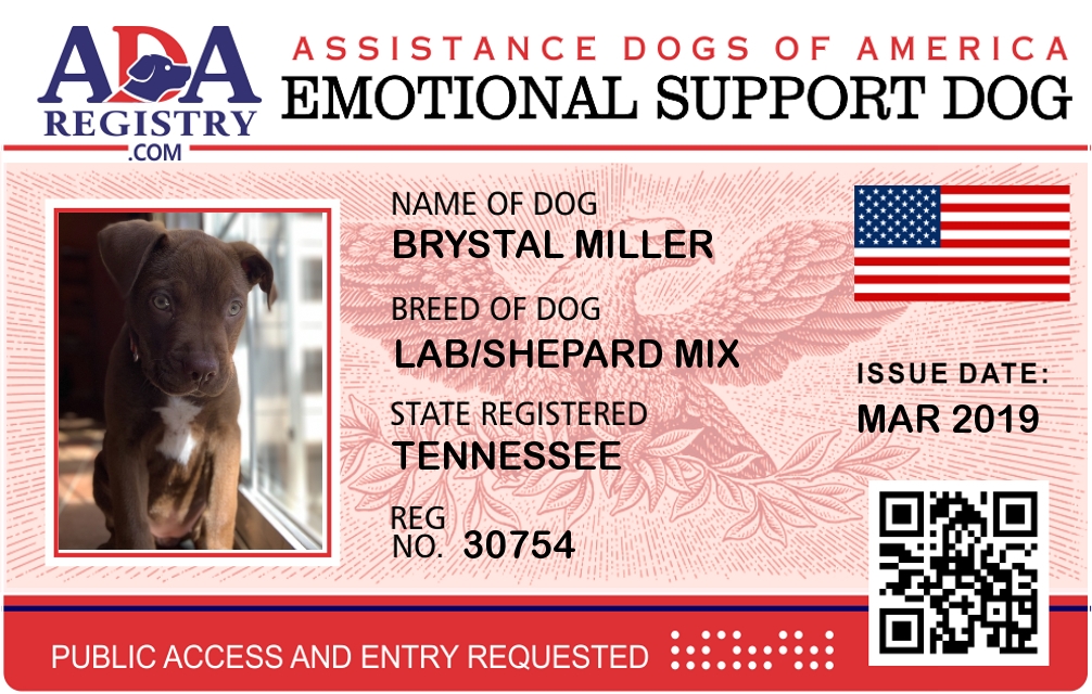 Emotional Support Dog Registration for Brystal Miller