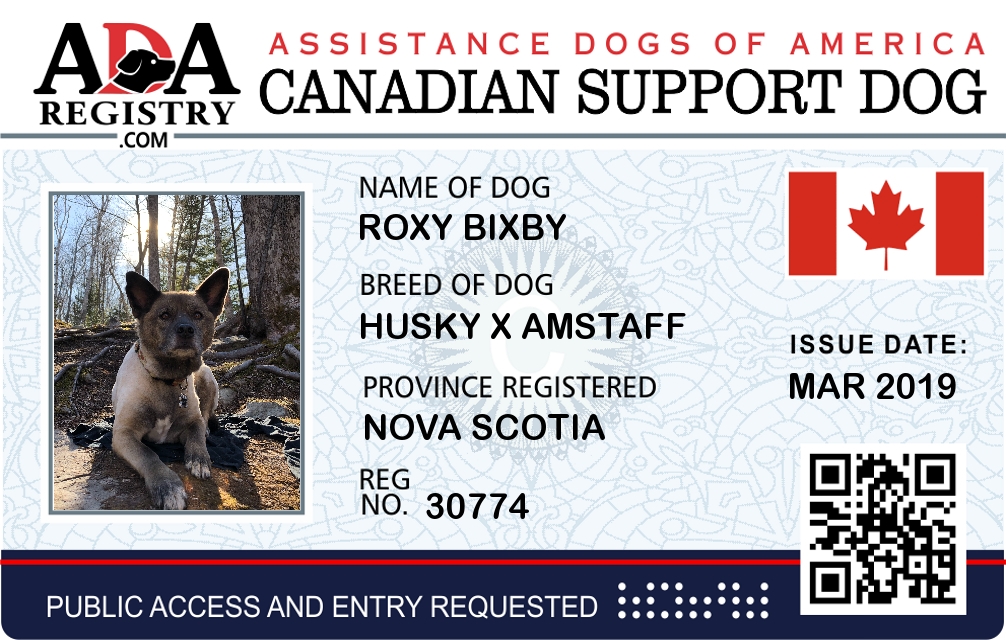 Emotional Support Dog Registration for Roxy Bixby