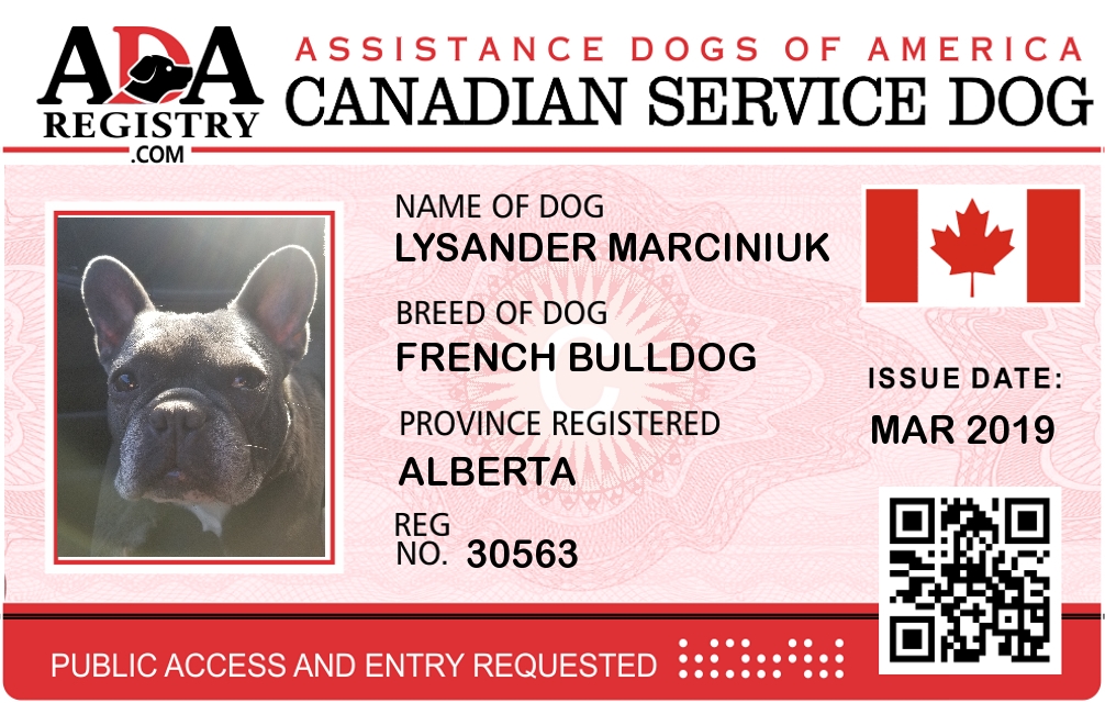 Service Dog Registration for Lysander Marciniuk