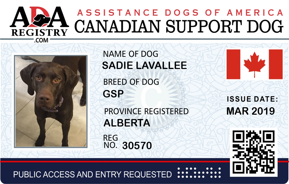Emotional Support Dog Registration for Sadie Lavallee