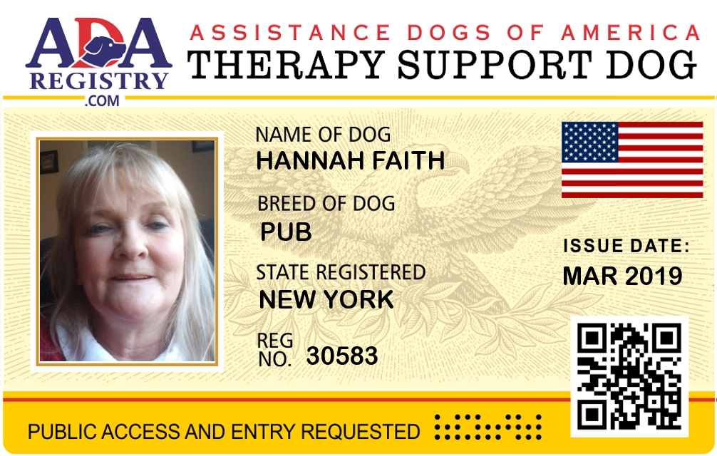 Emotional Support Dog Registration for Hannah Faith