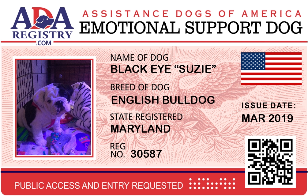 Emotional Support Dog Registration for Black Eye “Suzie”