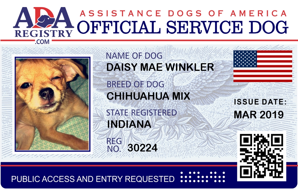 Service Dog Registration for Daisy mae Winkler