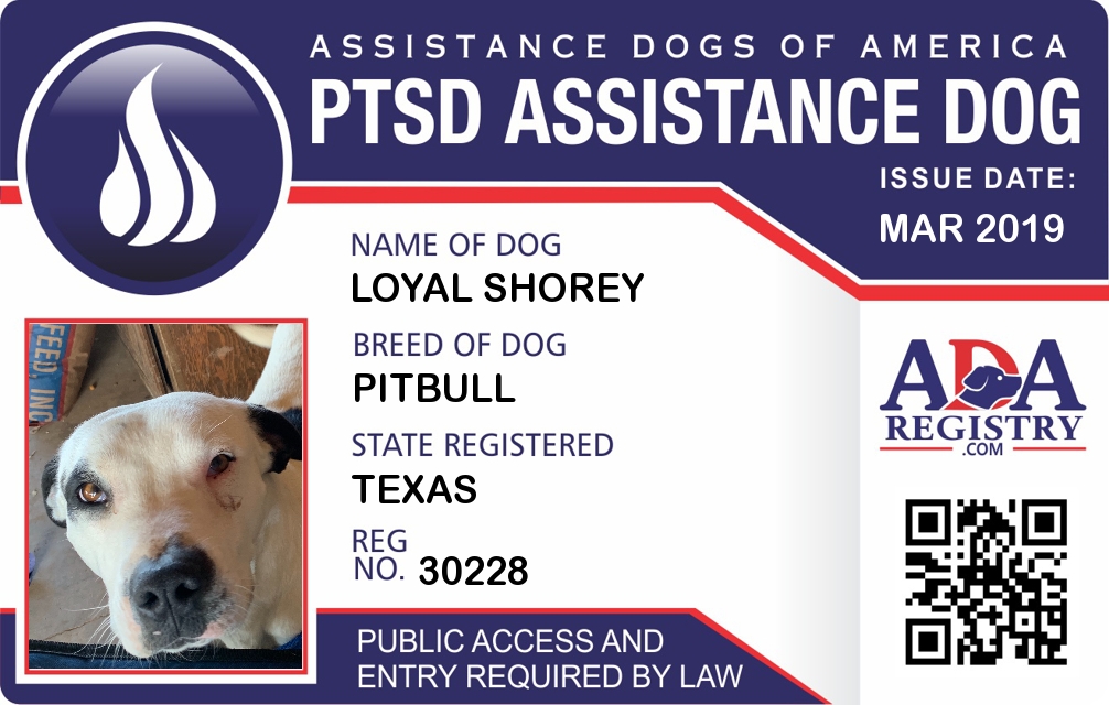 PTSD Assistance Dog Registration for Loyal Shorey