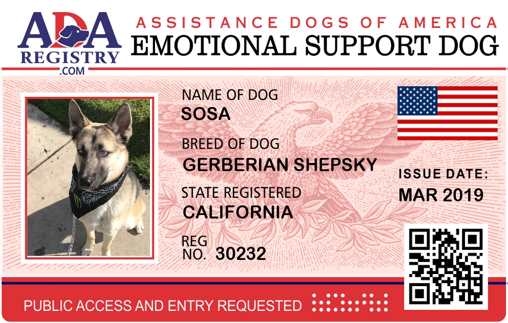 Emotional Support Dog Registration for Sosa