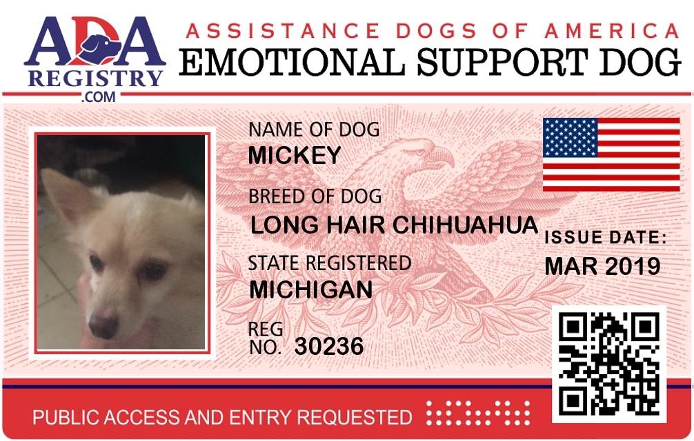 Emotional Support Dog Registration for Mickey