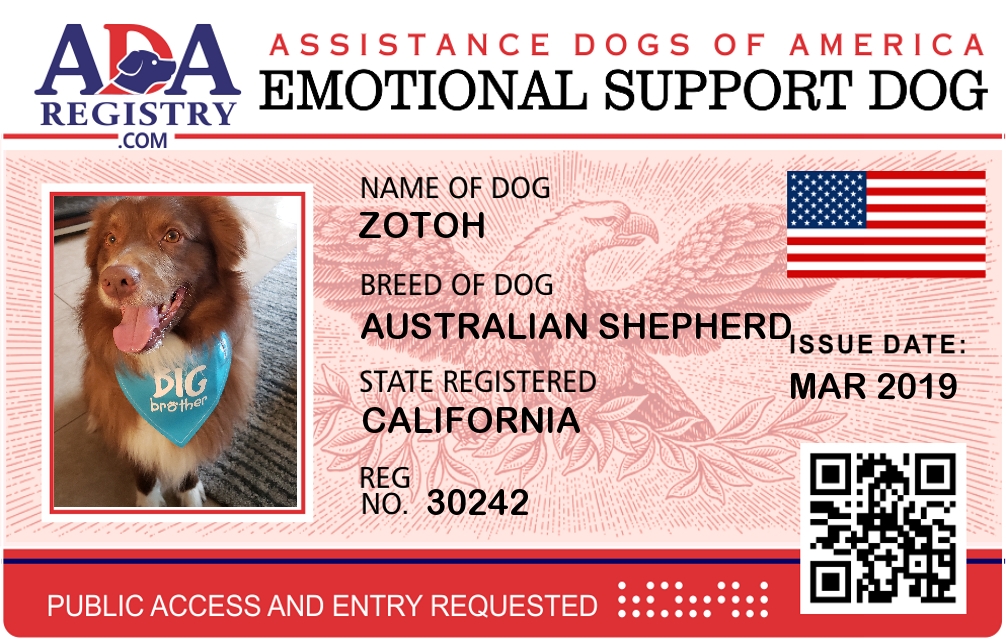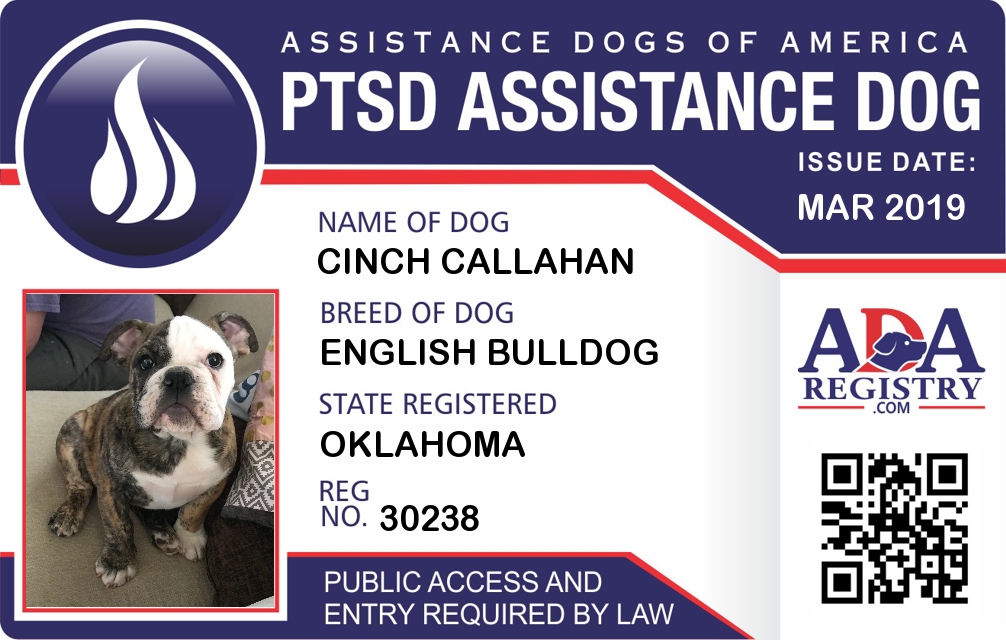 Emotional Support Dog Registration for Cinch Callahan