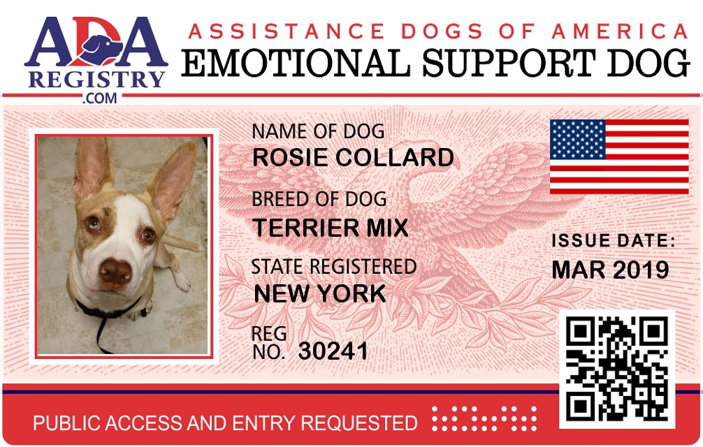Emotional Support Dog Registration for Rosie Collard