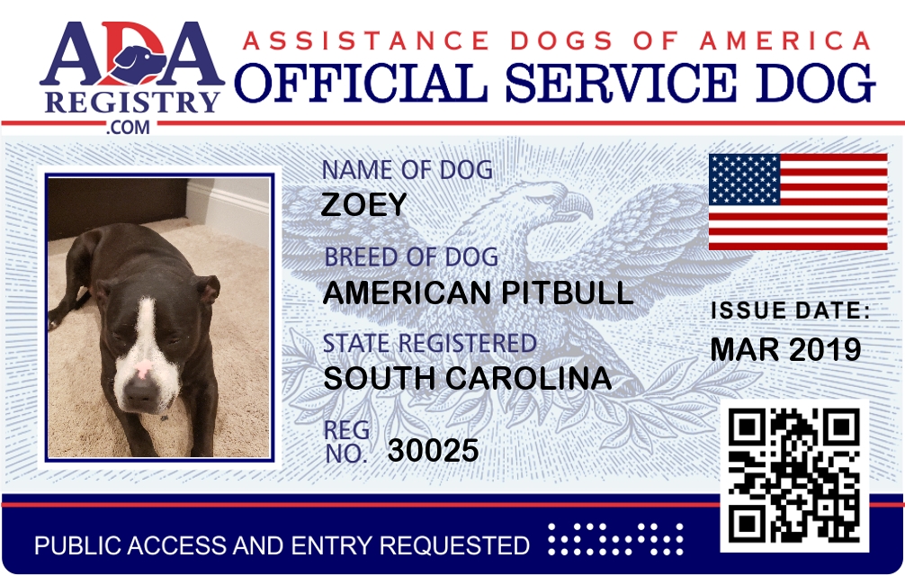 Service Dog Registration for zoey