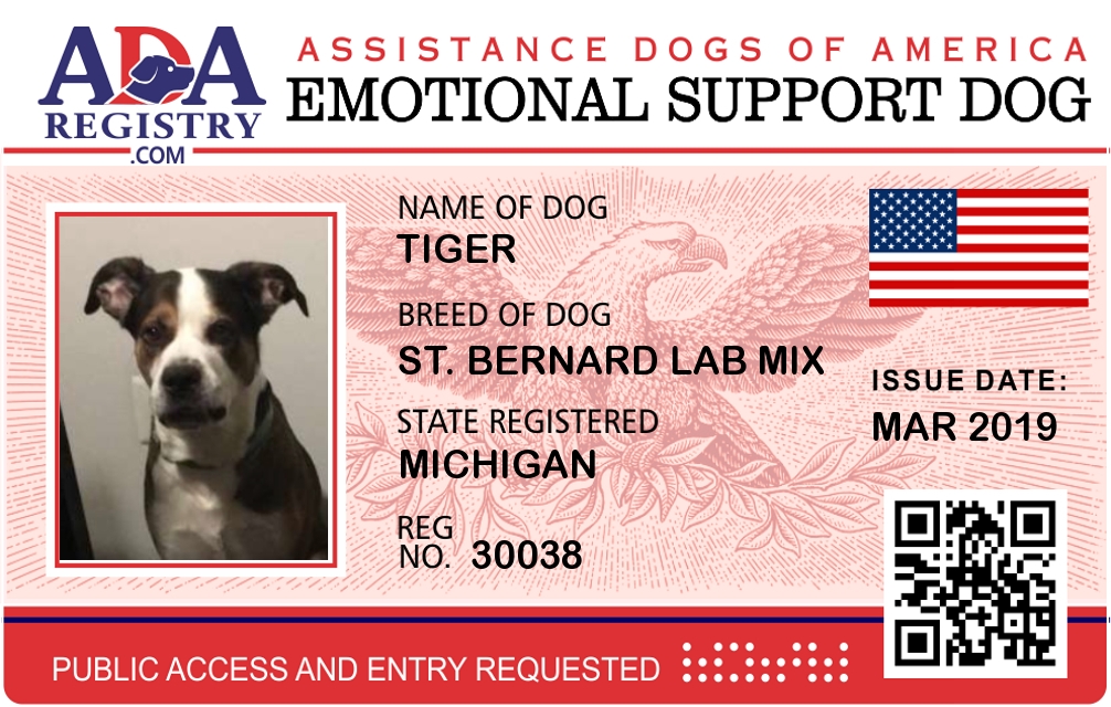 Emotional Support Dog Registration for Tiger