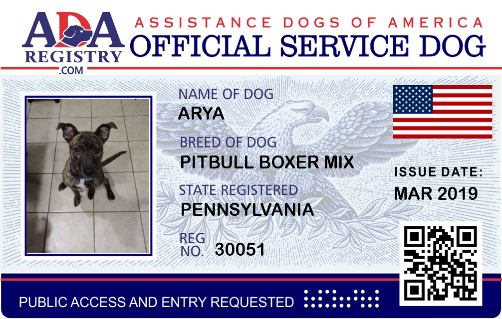 Service Dog Registration for Arya