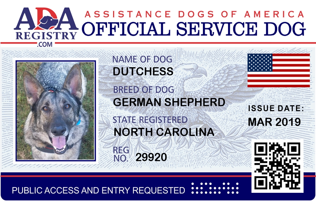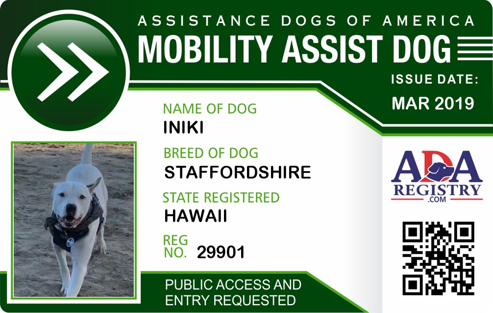 Registration Type: Brace / Mobility Assistance Dog Registration