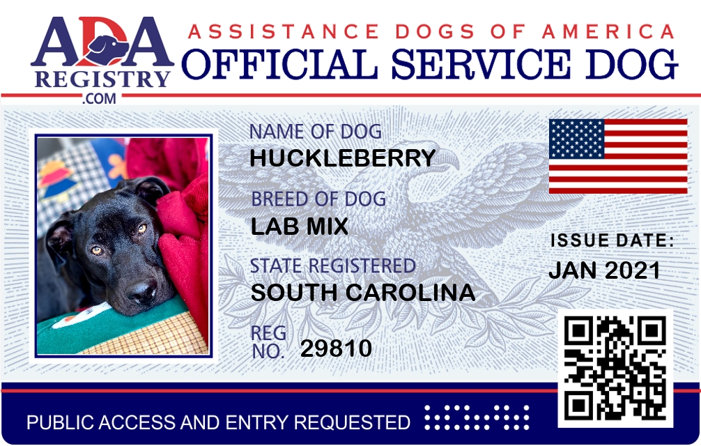 Service Dog Registration for Huckleberry