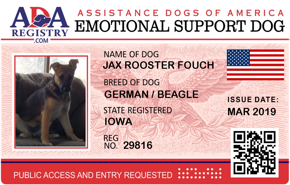 Emotional Support Dog Registration for Jax Rooster Fouch