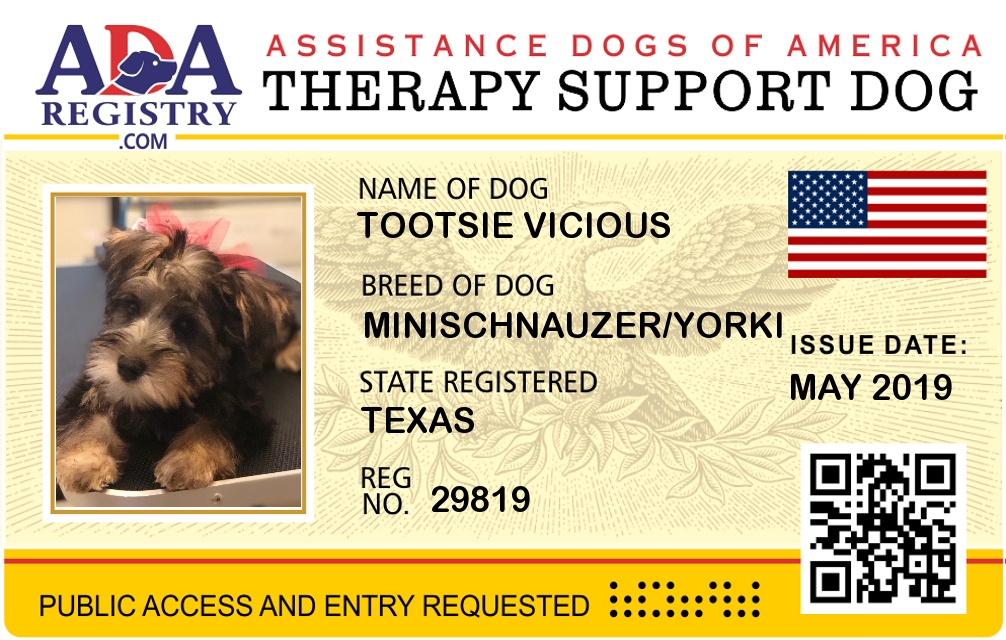 Autism Assistance Dog Registration for Tootsie Vicious