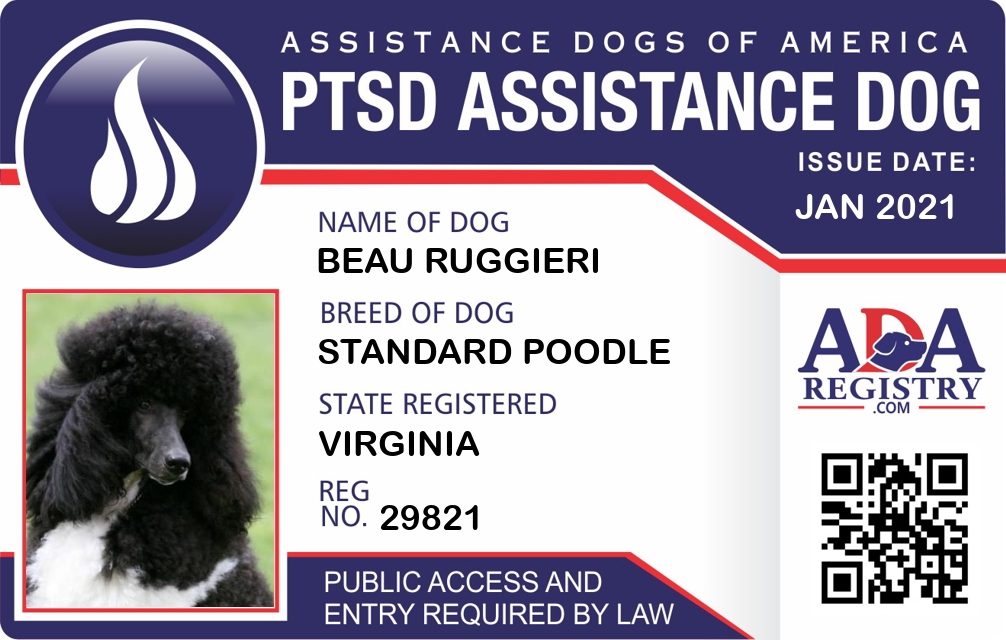 PTSD Assistance Dog Registration for BEAU RUGGIERI