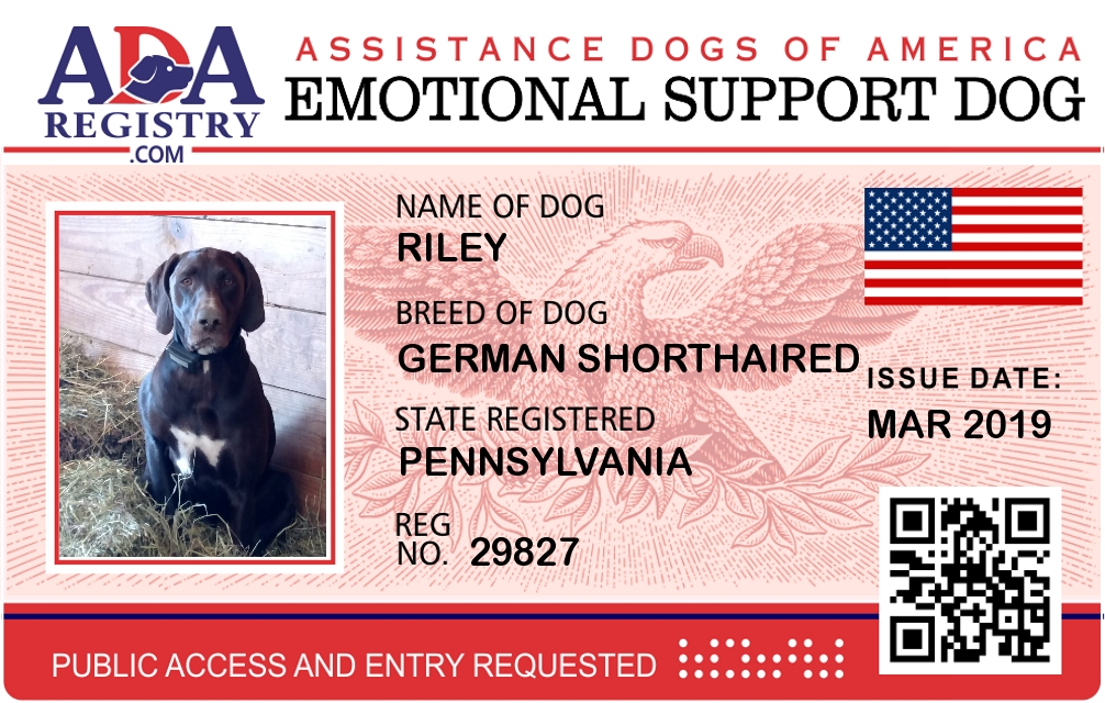 Emotional Support Dog Registration for Riley