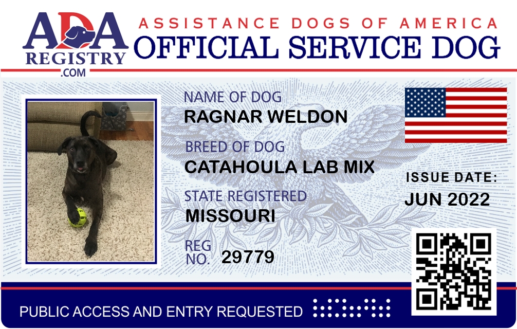 Service Dog Registration for Ragnar Weldon
