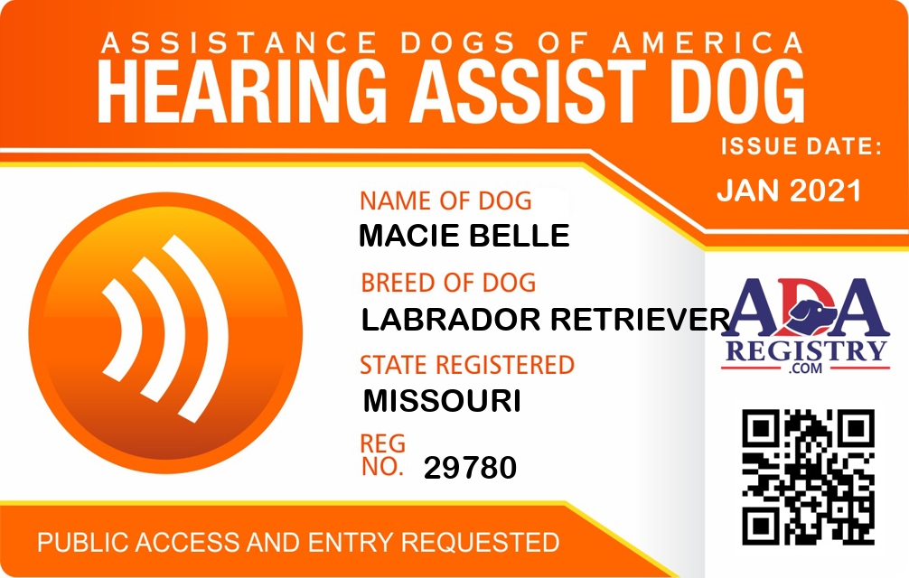 Service Dog In Training Registration for Macie Belle