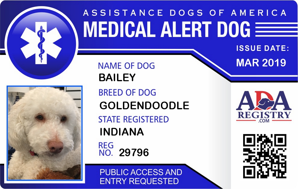 Medical Alert Dog Registration for Bailey