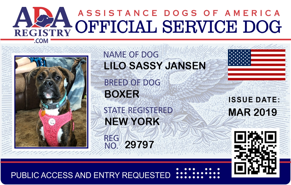 Service Dog Registration for Lilo Sassy Jansen